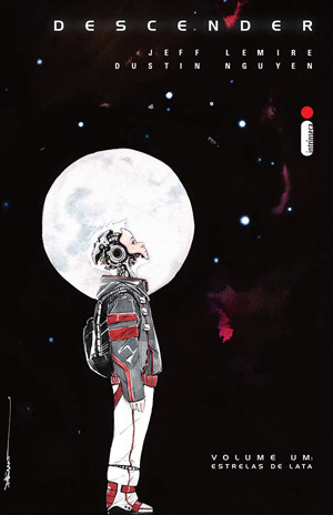A editora Intrínseca programa para junho Descender – Lua Mecânica, segundo volume da série escrita por Jeff Lemire e ilustrada por Dustin Nguyen. Publicada originalmente nos Estados Unidos pela Image Comics entre 2015 e 2018, a obra teve 32 números lançados, divididos em seis encadernados. Entre 2019 e 2020, os autores produziram Ascender, com 14 números, divididos em três encadernados, sequência que se passa 10 anos após a conclusão da história principal. Vencedora do Eisner Award, a série teve os direitos de adaptação para o cinema adquiridos pela Sony Pictures e para a TV pela NBCUniversal International Studios. Confira as capas, sinopses e detalhes dos dois volumes de Descender disponíveis no Brasil:
