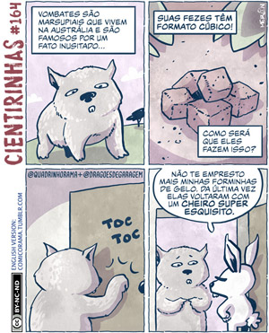 A editora Miguilim lançou este mês nas livrarias Cientirinhas, livro que reúne as tiras criadas por Marco Merlin publicadas na web há mais de cinco anos. Em um primeiro momento, dependendo de onde somos apresentados, o material pode lembrar o estilo de Fernando Gonzales, criador do Níquel Náusea, mas quando nos aprofundamos mais nas tiras, percebe-se que Merlin tem seu humor e traço próprios, não se focando somente em animais, mas em muitos fatos interessantes do nosso dia a dia, além de curiosidades do mundo e da ciência que quase nunca prestamos atenção.