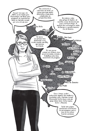 Baseado em pesquisa etnográfica e apresentado em forma gráfica, Amor de Gringo conta as esperanças, sonhos e realidades dessas mulheres, tendo como pano de fundo a desigualdade social profunda e o aumento da vigilância estadual. A obra toca em questões contemporâneas importantes, incluindo o comércio sexual, mobilidade transnacional, imaginações românticas, representações de gênero e raça.