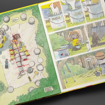Com uma estética reminiscente das fábulas e uma narrativa carregada de tensão e humor, este quadrinho ― afiado como machado novo ― é uma verdadeira mistura de Dexter, Barry e Happy Tree Friends, como se um desenho da TV Cultura tivesse caído na deep web e se afogado por lá. Afinal, quem desconfiaria da ursinha que te deseja bom dia, ajuda na oficina comunitária e ainda oferece um pirulito de maçã verde enquanto enterra mais um corpo no bosque?
